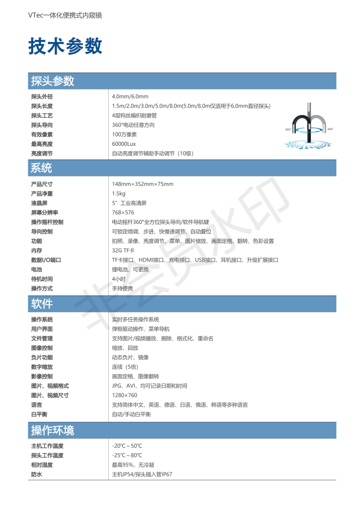 德國原裝進口便攜式百萬像素工業內窺鏡,360°旋轉可更換不同焦距鏡頭適用于不同場景需求以及工作長度。數字5倍縮放大屏幕5寸。