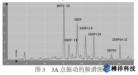 第三階段,溫度略升***,可耳聽到噪聲,振動速度總量有大的增加,且振動速度頻譜上清晰可見軸承故障頻率及其諧波和邊帶,另振動速度頻譜上“噪聲地平”明顯升***,尖峰能量總量相比第二階段