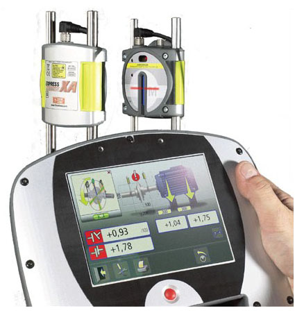 激光對中儀快速調整:使用大尺寸接收器,即使存在較大的不對中,也會確保以直接收到激光。***亮箭頭顯示機器調整的方向和調整量大小。
