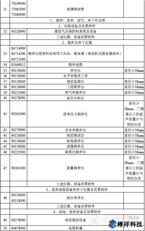 據儀器信息網編輯統計,《勘探開發煤層氣免稅進口物資清單》中,物資貨品分為開發作業類、鉆井類、煤層氣儲運類等八大類,包含掃描電鏡、應力測試儀、巖芯分析儀、含水率測井儀、成像測井儀等儀器設備及其他裝置共計89種。