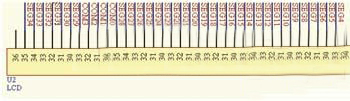 本設(shè)計采用的ST20P18單片機,其內(nèi)核中自帶控制/驅(qū)動液晶模塊,該LCD(圖3)顯示模塊是8×40點陣,常用于遙控設(shè)備的液晶顯示。液晶顯示的主要控制引腳為COM0~COM7。本設(shè)計只用到COM0~COM3。