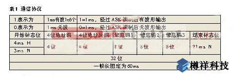 對應(yīng)于每一種狀態(tài),編碼芯片內(nèi)部能夠生成一種特殊的編碼,這種編碼也是由“1”和“0”組成,但并不是簡單的用***電平代表“1”,用低電平代表 “0”,而是用***電平與低電平寬度比例的不同來區(qū)分“1”和“0”,也就是所謂的占空比。為了提***此編碼傳輸串行信號的可靠性,故此編碼采用一個周期的占空比為1/4的脈沖表示0,占空比為3/4的脈沖表示1,同步信號用一個占空比為1/32的脈沖表示,如圖5所示。