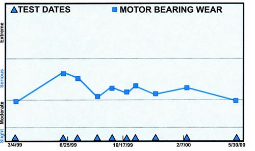 軸承的預期壽命主要取決于軸承的力,并且在過去一年中情況似乎并未惡化。振動分析提供了軸承狀況的可量化證據,并允許車主了解其機械狀況。隨著缺陷的惡化,軸承磨損缺陷圖案將變得更加突出。專***系統將通過為診斷分配更***的嚴重性來做出響應。