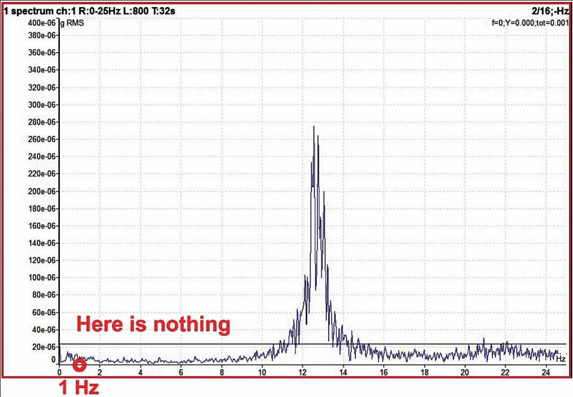 讓我們假設(shè)響應(yīng)函數(shù)是平坦的。大多數(shù)用戶想要一個(gè)非常低的頻率限制。他們說(shuō):“我必須測(cè)量一臺(tái)低速機(jī)器,我的機(jī)器速度僅為30 rpm,我需要測(cè)量0.5赫茲。” 如果我問(wèn)他們?yōu)槭裁矗麄儾粫?huì)回答,因?yàn)樗麄儾焕斫膺@個(gè)問(wèn)題。讓我舉一個(gè)例子:如果我想測(cè)量低頻加速度,我可以期望什么加速度水平?例如1g嗎?大多數(shù)人無(wú)法想象振動(dòng)的加速度和速度。每個(gè)人都可以想象位移。當(dāng)您說(shuō)機(jī)器振動(dòng)+/- 3毫米時(shí),每個(gè)人都可以理解。因此,我們可以使用以下公式將加速度轉(zhuǎn)換為位移,將位移轉(zhuǎn)換為加速度:acc [m / s2] = disp [m] *(2×π×速度[Hz])2 g至米。如果速度為30 rpm,則表示0.5 Hz。(不要忘記先將g轉(zhuǎn)換為m / s2。)相應(yīng)的位移水平為1 m。不是一毫米,而是一米。任何機(jī)器都無(wú)法在這種振動(dòng)水平下工作。相應(yīng)的速度水平是3200 mm / s,它是125 ips,不可能...現(xiàn)在我假設(shè)位移水平是1 mm。相應(yīng)的加速度水平為0.01 m / s2。為0.001克。如果傳感器靈敏度為100 mV / g,則0.001 g的電壓為0.1 mV。還不算太多 可以測(cè)量這樣的電壓水平嗎?答案是否定的,因?yàn)楝F(xiàn)場(chǎng)的常規(guī)傳感器噪聲水平為0.2至0.4 mV。對(duì)于這種噪聲,很難測(cè)量到0.1 mV,因?yàn)樗陀谠肼曀健5牵屛覀兓氐交締?wèn)題。為什么要在0.5 Hz上測(cè)量幅度?另一個(gè)答案是:“當(dāng)我想要平衡機(jī)器或調(diào)查松動(dòng)或未對(duì)準(zhǔn)時(shí),我將需要它。” 是的,在這些情況下,我需要測(cè)量速度頻率上的水平,但我不知道誰(shuí)真正想要這樣做。當(dāng)速度太低時(shí),您應(yīng)該使不平衡的質(zhì)量達(dá)到幾十公斤,以增加振動(dòng)水平。離心力取決于速度的平方。在30 rpm時(shí),它將非常低。但是用戶說(shuō):“不!我不想保持平衡,我想測(cè)量滾動(dòng)軸承的狀況。” 離心力取決于速度的平方。在30 rpm時(shí),它將非常低。但是用戶說(shuō):“不!我不想保持平衡,我想測(cè)量滾動(dòng)軸承的狀況。” 離心力取決于速度的平方。在30 rpm時(shí),它將非常低。但是用戶說(shuō):“不!我不想保持平衡,我想測(cè)量滾動(dòng)軸承的狀況。”